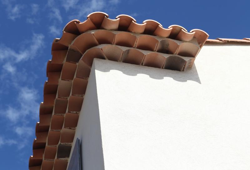 Mme T. a souhaité un style très traditionnel avec des volets bois provençaux, des porte-fenètres avec soubassements pleins et petits bois, des seuils et appuis débordants largement, des modénatures à chaque ouverture et, détail typique, des retours de génoises en pignon.